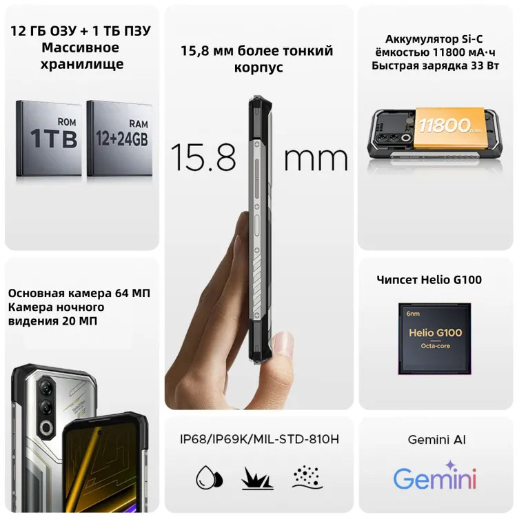 - Прошел испытания на ударопрочность по стандарту MIL-STD-810H