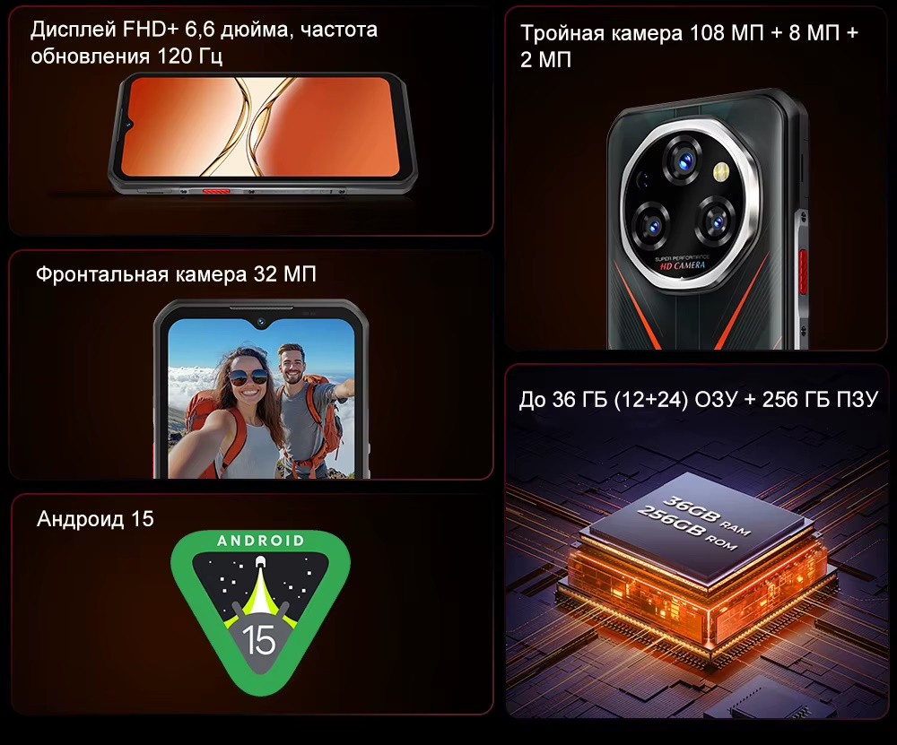 | Дополнительно | Мощный аккумулятор |